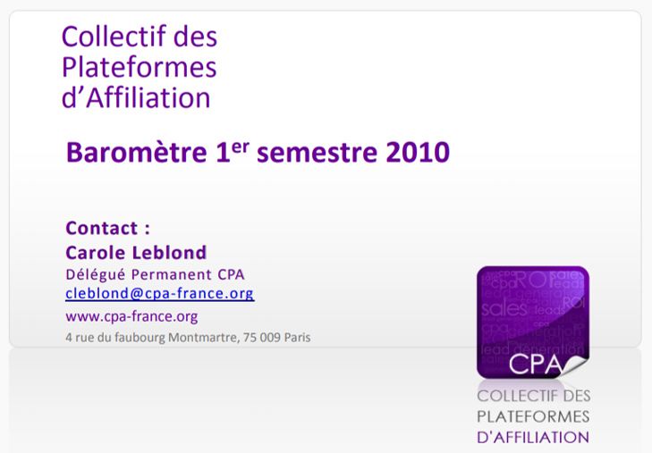 COMMUNIQUE DE PRESSE Paris, le 20 Janvier 2018 Vous souhaitez tout connaitre sur l’Affiliation ? Le CPA publie son nouveau baromètre ! Le Collectif de la Performance et de l’Acquisition (CPA) présente aujourd’hui les chiffres compilées de ses 5 plateformes d’affiliation adhérentes (Awin, Cj Affiliate by Conversant, Effinity, Kwanko et TimeOne Performance)…
