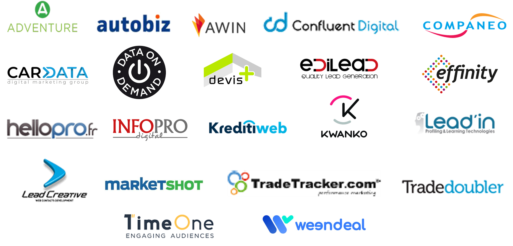 - Corédacteurs : Adventure Conseil, Autobiz, Awin, Companeo,Confluent Digital, Data on Demand, Devis +, Edilead, Effinity, Kreditiweb, Kwanko, Lead Creative, Leadin, Hellopro,Infopro, Marketshot, Timeone, Tradedoubler, Tradetracker, Weendeal