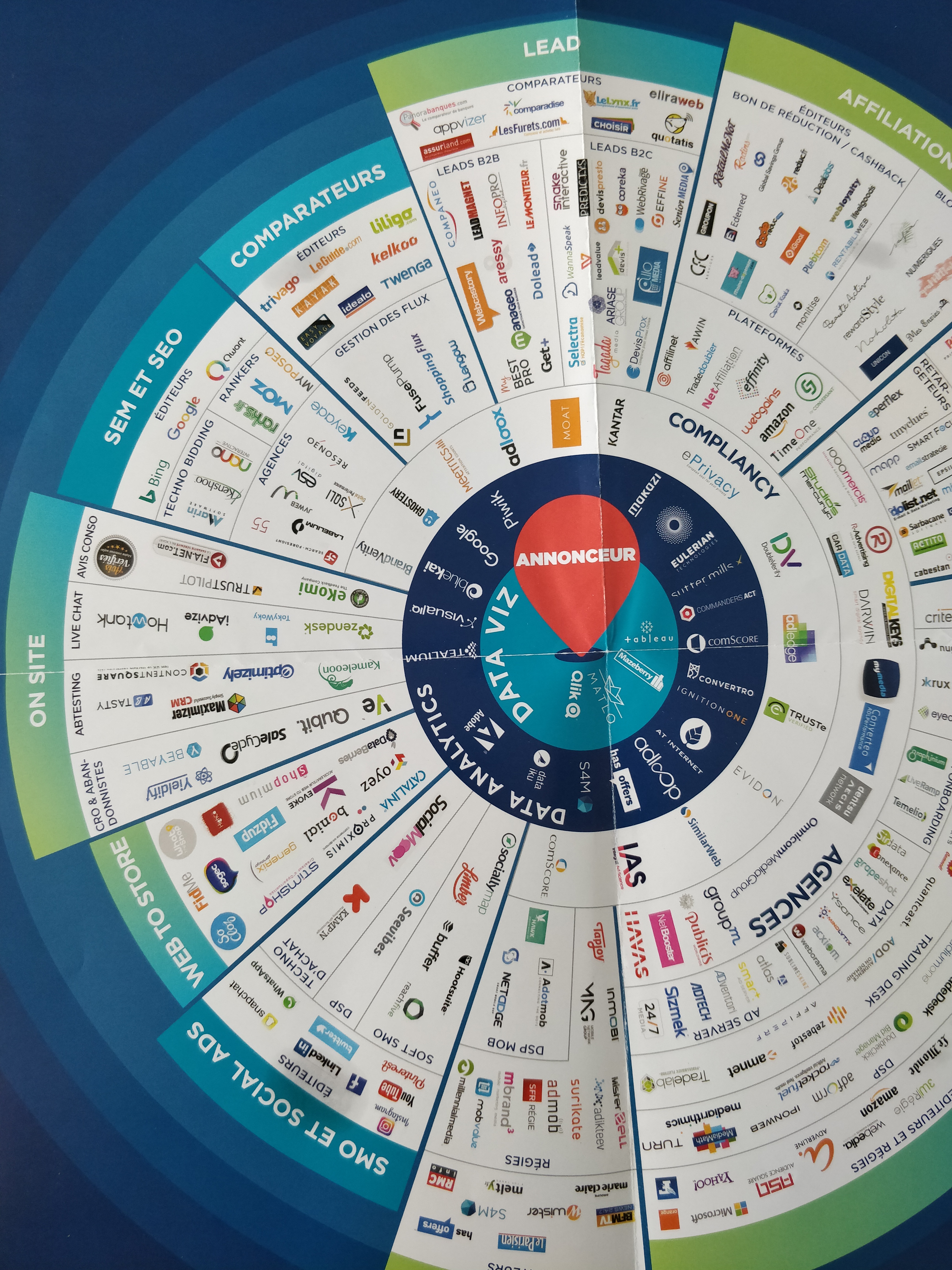 Sur la cartographie, se retrouvent donc des dizaines de sociétés qui, toutes sont parfaitement à leur place. Autour du client, au centre, gravitent d’abord les professionnels de la data analytics et visualisation, puis ceux des agences et de la compliancy, soit des tiers garantissant la bonne exécution des contrats commandés. « Au centre de notre cartographie, nous avons placé l’ensemble des dispositifs indispensables à toute campagne. Ensuite chacun des quartiles verticaux correspond aux différents leviers d’acquisition et de performance à actionner en fonction des objectifs, poursuit Guillaume Gélis – Président CPA (2015-17). Une banque souhaitant recruter s’orientera plutôt vers l’email, tandis qu’un marchand recherchant une augmentation rapide de son chiffre d’affaires préfèrera le SEM et affiliation.«