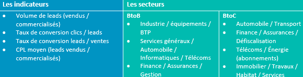 Les indicateurs et secteurs présents dans le Baromètre de l’Affiliation