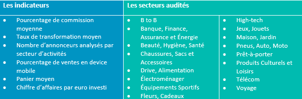 Les indicateurs et secteurs présents dans le Baromètre de l’Affiliation