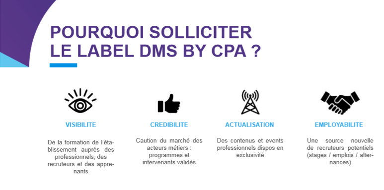 Le label Digital Marketing School by CPA veut passer de la compétition à la coopération pour construire une communauté et un système favorisant l’adéquation des formations avec les besoins en compétences opérationnelles terrain.