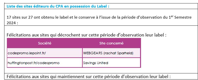 Le CPA (Collectif pour les acteurs du marketing digital) poursuit sa démarche visant à développer les bonnes pratiques sur le marché des codes promotionnels. Depuis 2021, le Collectif délivre un label aux sites éditeurs de bons de réduction qui diffusent une information claire et pertinente, assurent un trafic de qualité aux annonceurs et garantissent une expérience utilisateur optimale.