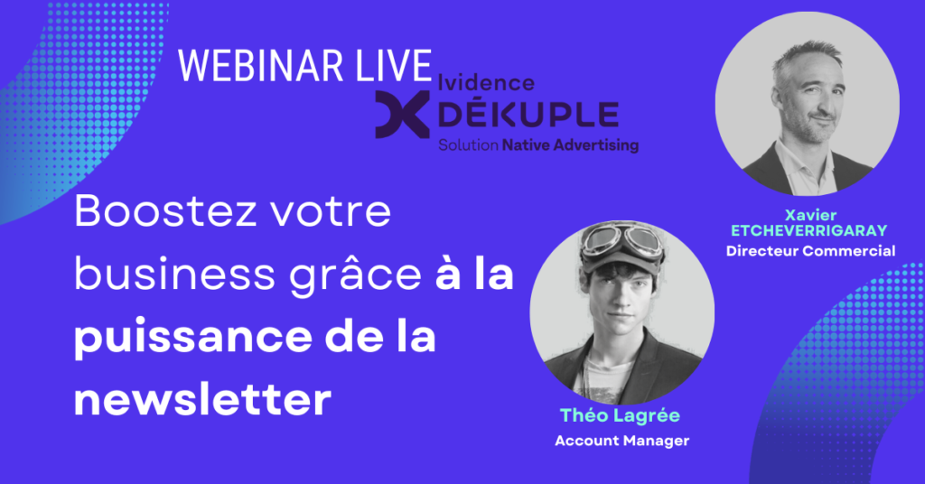 Dans ce webinaire, vous découvrirez pourquoi et commentez la publicité native dans la newsletter innove et se différencie des autres formats publicitaires. Vous découvrirez également comment elle change la donne dans la stratégie marketing des annonceurs grâce à une intégration non-intrusive dans des newsletters des médias et des taux d’engagement supérieurs au marché.